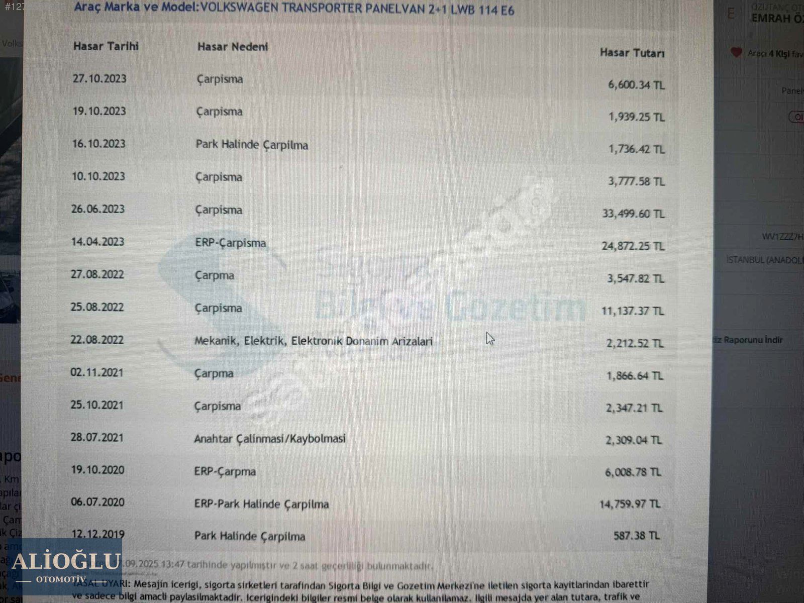 | Ağır Hasar Kayıtlı | Hayır |