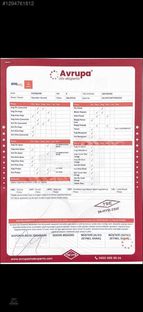 | Ağır Hasar Kayıtlı | Hayır |