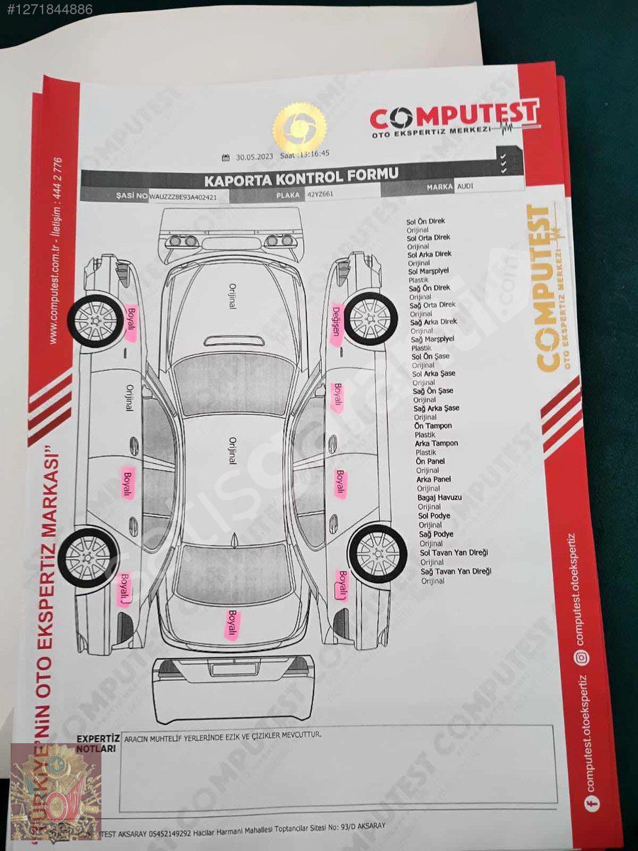 ARACIMIZDA DEĞİŞEN SADECE SAĞ ÖN ÇAMURLUK TAVAN VE KAPUT BOYASIZ DIR