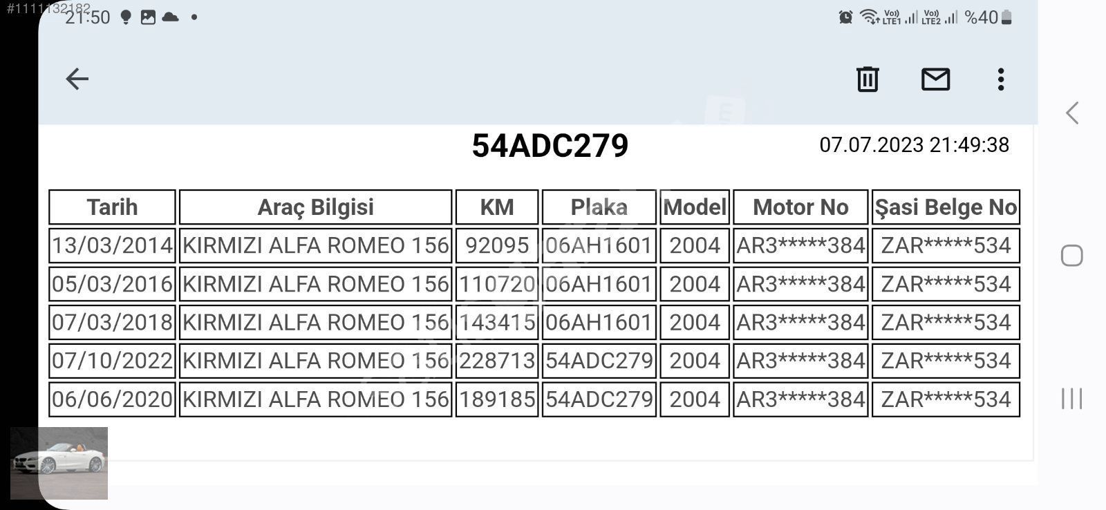 ARACIN MOTORU VE YÜRÜYEN AKSAM ÇOK GÜZEL DİR ALFA TEKNİK BAKIMLI DIR MOTOR KAPUTU DEĞİŞİKTİR ŞASELER DE PODİYELERDE İŞLEM YOKTUR EXPER RAPORU RESİMLERDE MEVCUTTUR IÇINDE EN UFAK BİR DEFORME YOKTUR ORİJİNAL DÖŞEMELERİ HATASIZ DIR 4 LASTİK YENİDİR MUAYNESİ YENİDİR ÇALIŞMAYAN AKSAMI YOKTUR ARAÇ KOMPLE TEMİZLİK BOYALI DİR HASAR KAYDI YOKTUR KM ORİJİNAL DİR YENİ SAHİBİNE HAYIRLI OLSUN