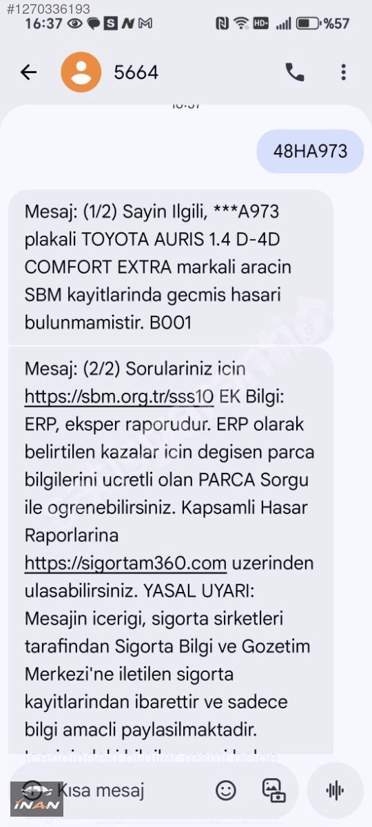 ARACIMIZIN BAKIMLARI YENİ YAPILMIŞTIR GÜNCEL EKSPERTİZ VARDIR KM ORJNAL DİR DEĞİŞEN YOK TUR 2 PARÇA LOKAL BOYA HARİCİ HATASIZ DİR HASAR KAYDI YOKTUR LASTİKLERİ % 85 DİR ÇALIŞMAYAN AKSAMI YOKTUR VİZE 17-11-2025