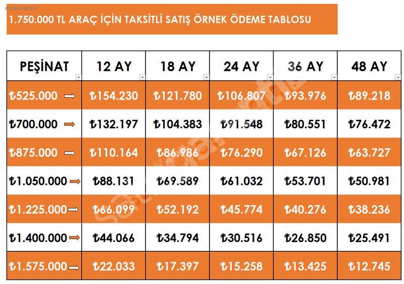 36 AYA KADAR VADE İMKANI
