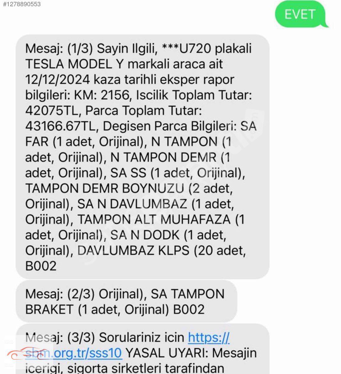 | Ağır Hasar Kayıtlı | Hayır |