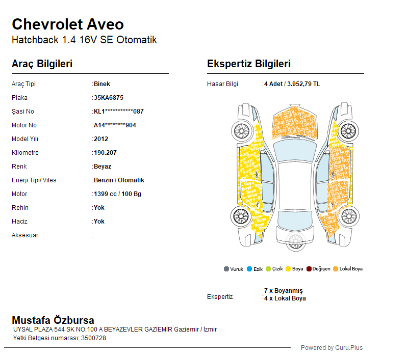 | Ağır Hasar Kayıtlı | Hayır |
