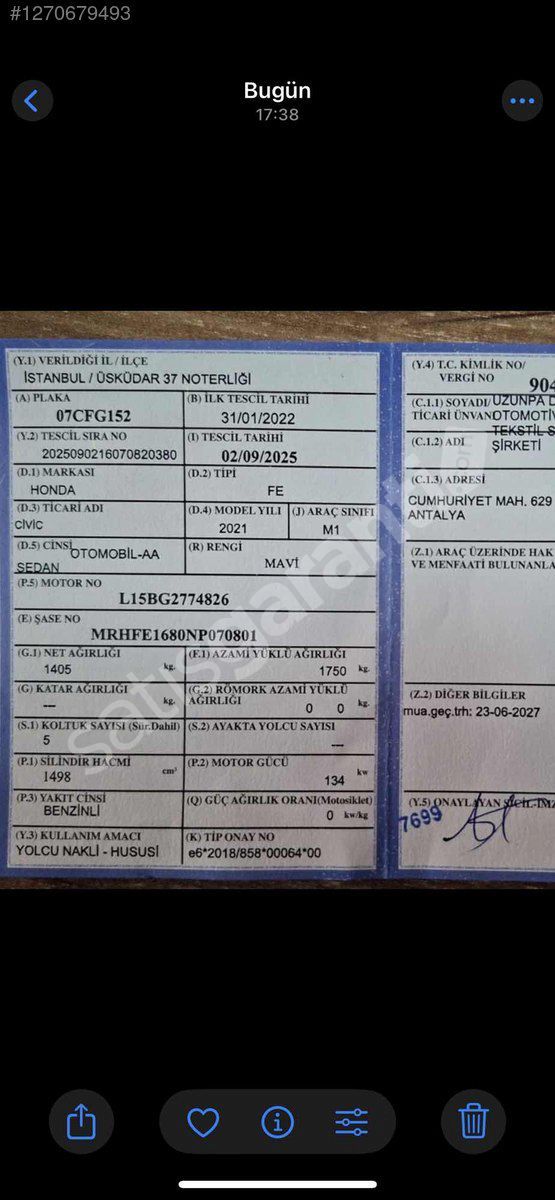 | Plaka / Uyruk | Türkiye (TR) Plakalı |