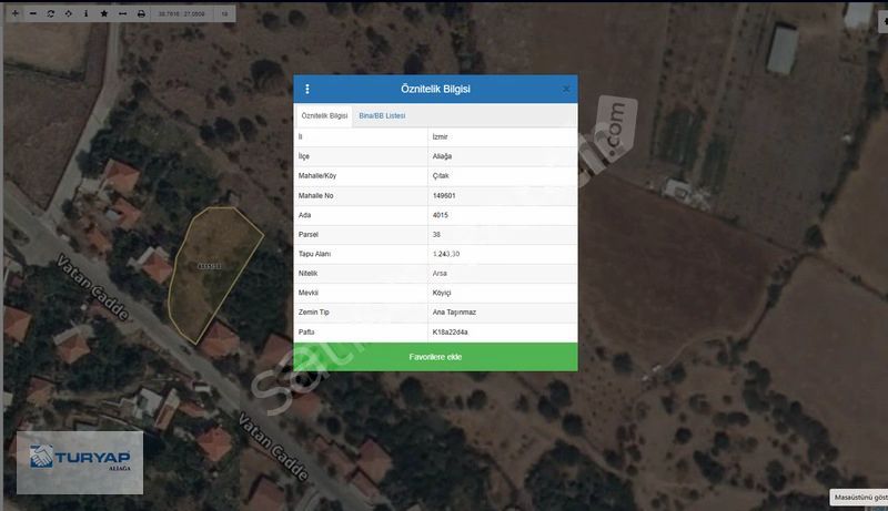 ÇITAKTA TEK TAPU 1243 M2 ARSAMIZIN DETAYLARI: