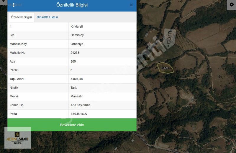 | İmar Durumu | Tarla |