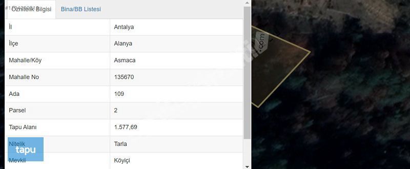 109 ada 2 parsel 1.577,69 m2 yüzölçümlüdür.