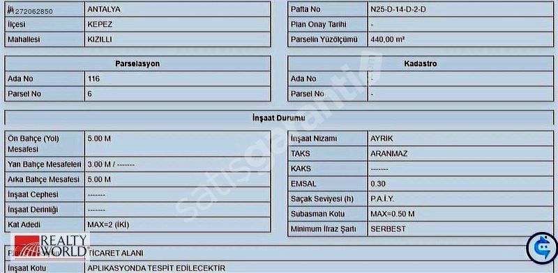| İmar Durumu | Ticari |