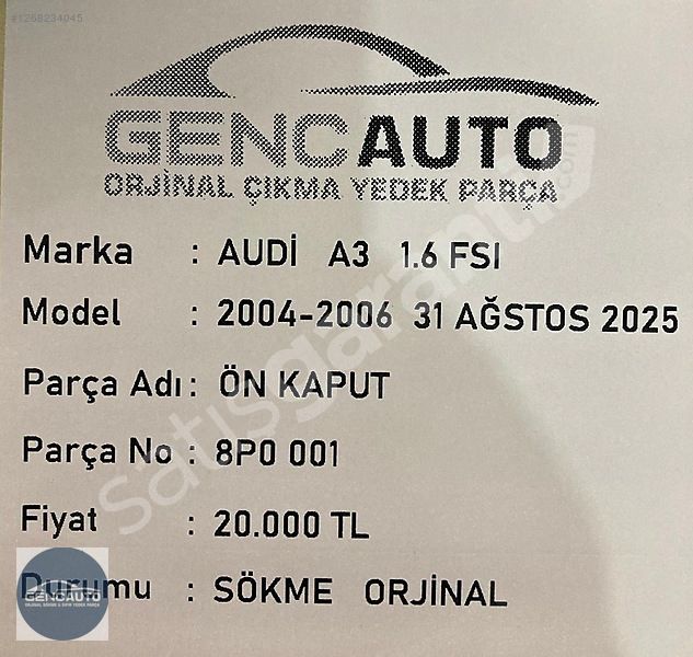 | Çıkma Yedek Parça | Evet |