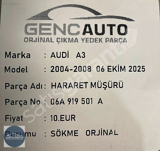 | Çıkma Yedek Parça | Evet |