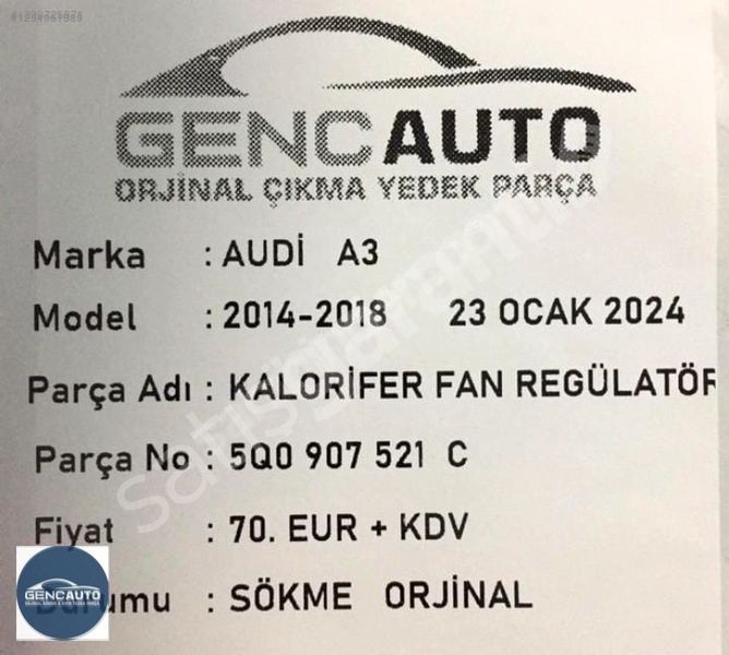 | Çıkma Yedek Parça | Evet |