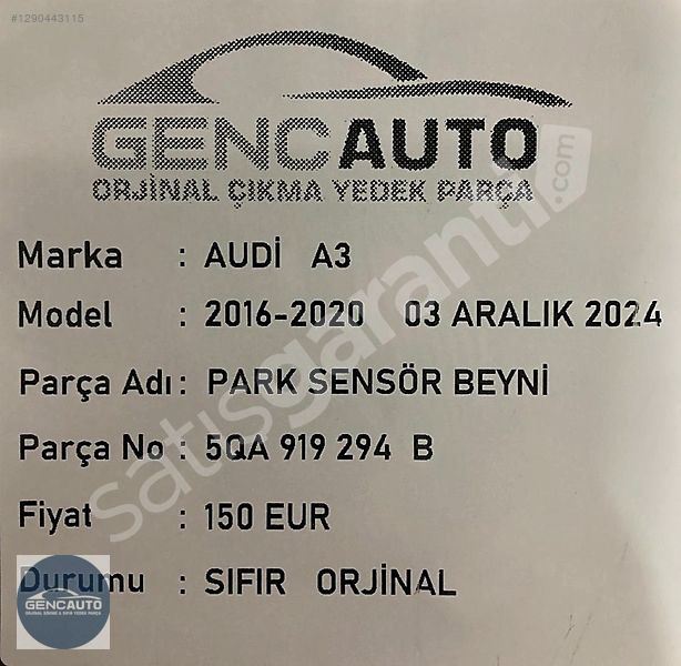 | Çıkma Yedek Parça | Hayır |