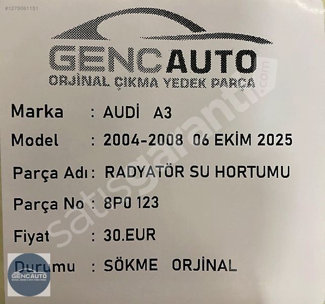 | Çıkma Yedek Parça | Evet |