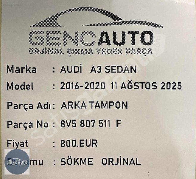 | Çıkma Yedek Parça | Evet |