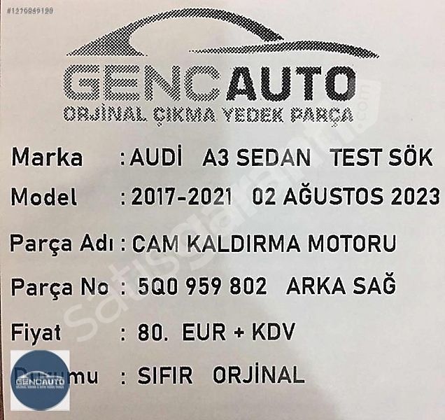 | Çıkma Yedek Parça | Hayır |