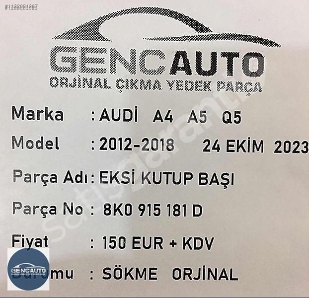 AUDİ A4 A5 EKSİ KUTUP BAŞI SÖKME ORJİNAL OEM 8K0915181 D