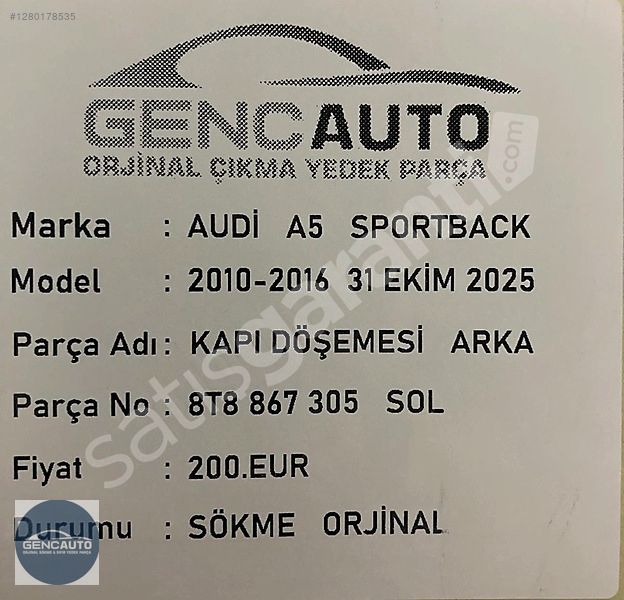 | Çıkma Yedek Parça | Evet |