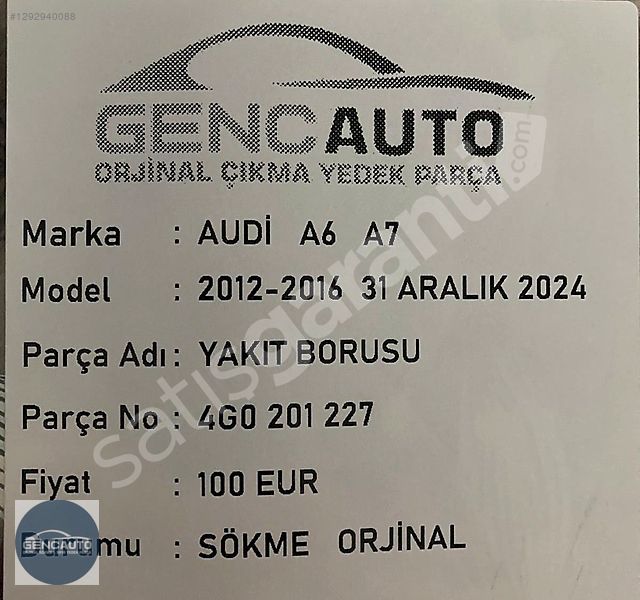 | Çıkma Yedek Parça | Evet |