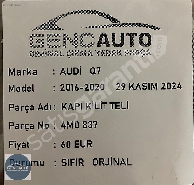 AUDİ Q7 KAPI KİLİT TELİ SIFIR ORJİNAL 4M0837