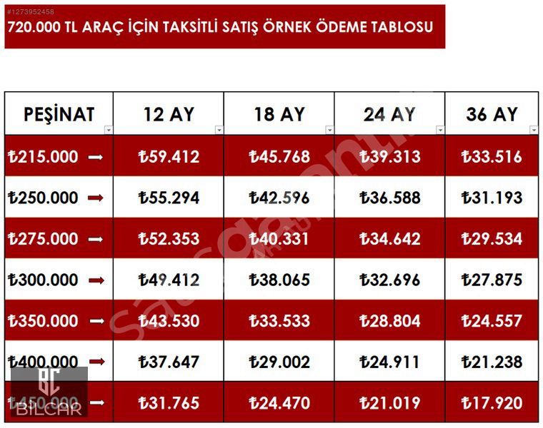 Aracımız İçin Kullanılabilir Max. Kredi Tutarı; 360.000 ₺