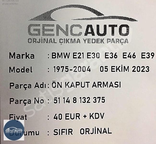 BMW E21 E30 E36 E46 E39 ÖN KAPUT AMBLEM SIFR ORJ OEM 51148132375