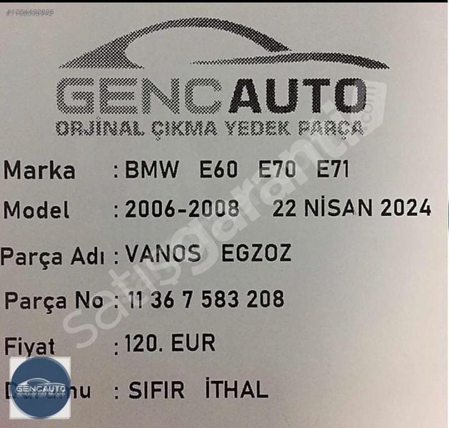 BMW E60 E70 E71 VANOS EGZOZ SIFIR İTHAL OEM 11367583208