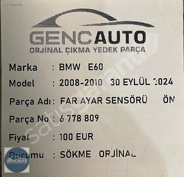 BMW E60 FAR AYAR SENSÖRÜ SÖKME ORJİNAL 6778809 ÖN