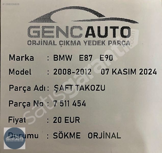 BMW E87 E90 ŞAFT TAKOZU SÖKME ORJİNAL 7511454
