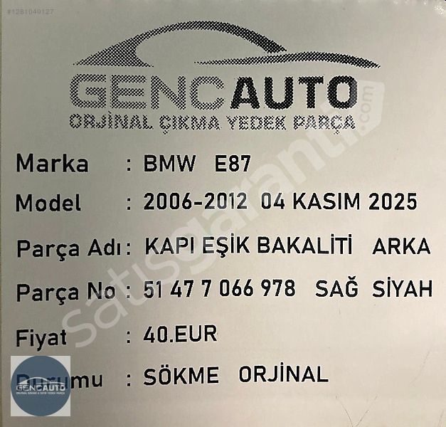 | Çıkma Yedek Parça | Evet |