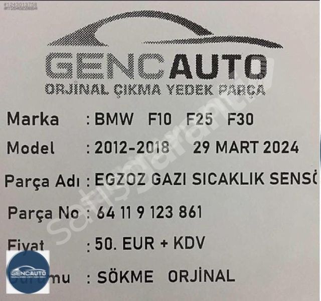 | Çıkma Yedek Parça | Evet |