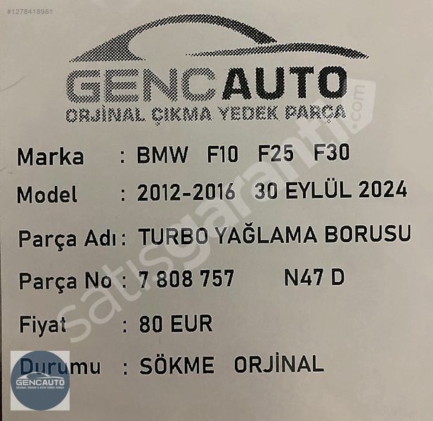 | Çıkma Yedek Parça | Evet |