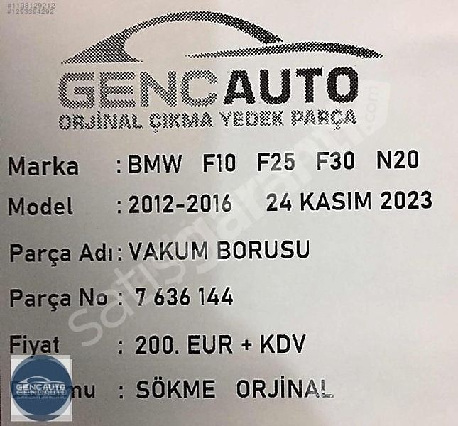 | Çıkma Yedek Parça | Evet |
