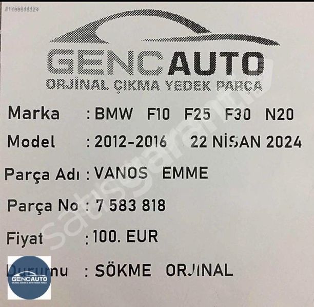 | Çıkma Yedek Parça | Evet |