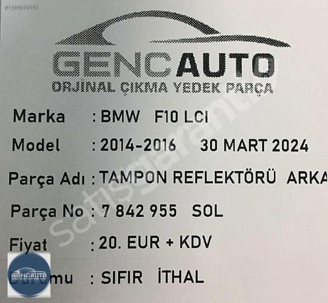 BMW F10 LCI ARKA TAMPON REFLEKTÖR SOL SIFIR İTHAL OEM 7842955