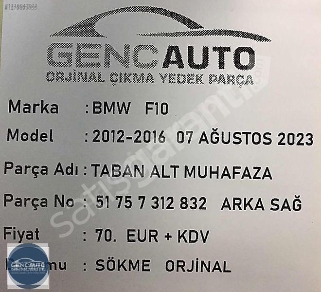 | Çıkma Yedek Parça | Evet |