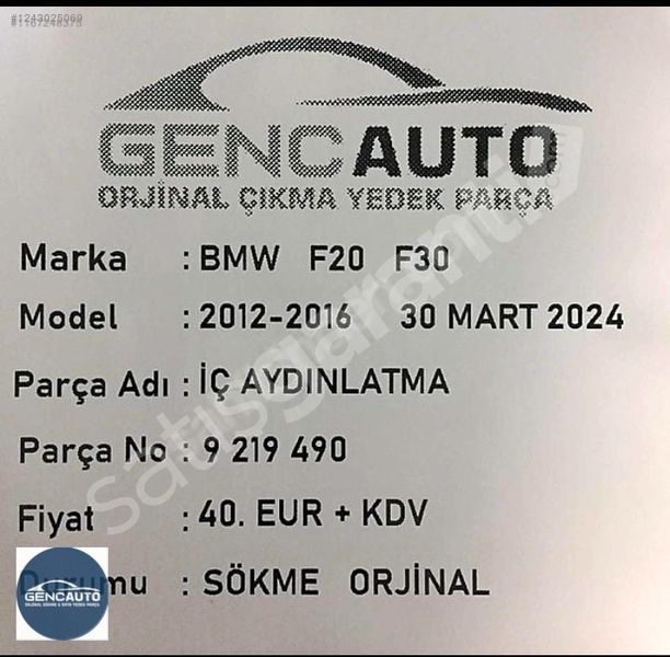 | Çıkma Yedek Parça | Evet |