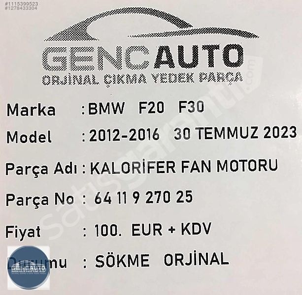 | Çıkma Yedek Parça | Evet |