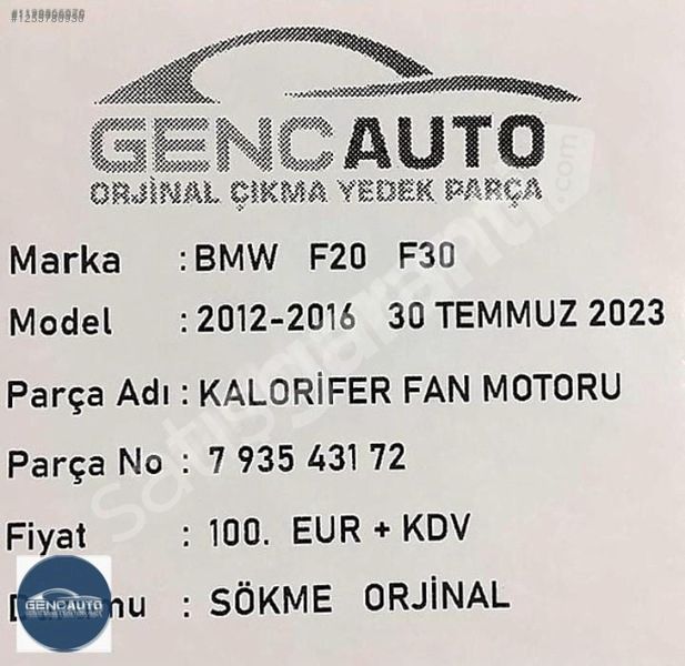 | Çıkma Yedek Parça | Evet |