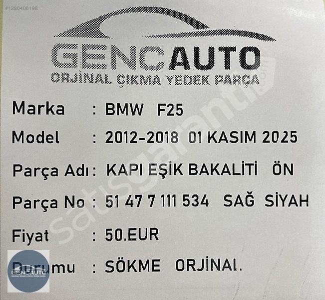 | Çıkma Yedek Parça | Evet |
