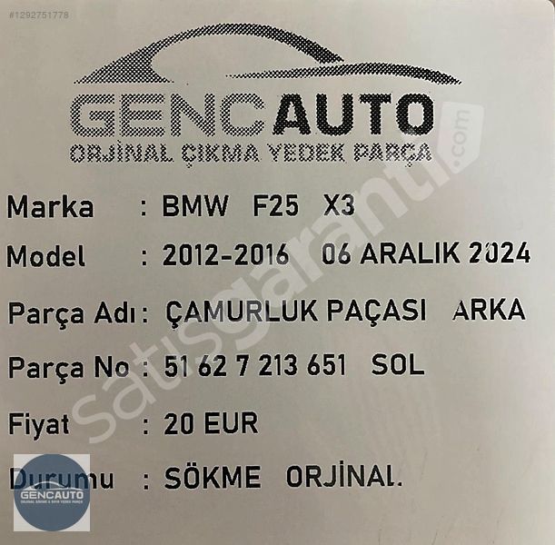 | Çıkma Yedek Parça | Hayır |