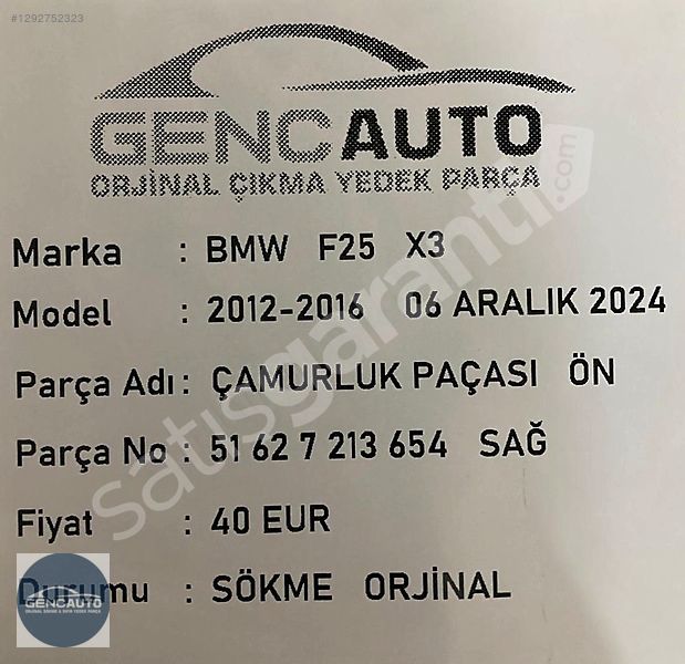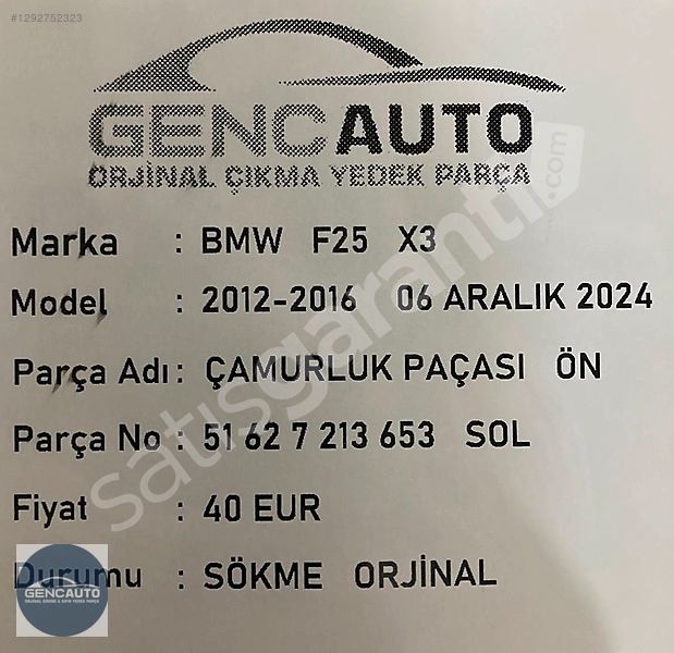 | Çıkma Yedek Parça | Evet |