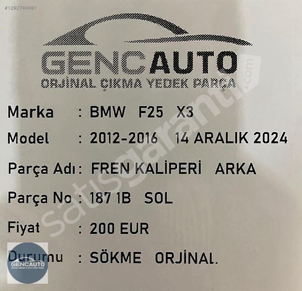 | Çıkma Yedek Parça | Evet |