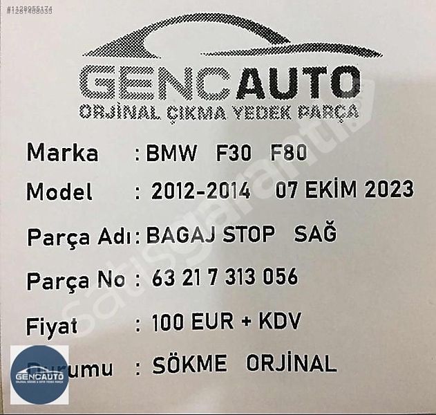 | Çıkma Yedek Parça | Evet |