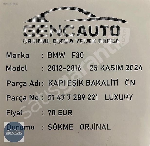 | Çıkma Yedek Parça | Evet |