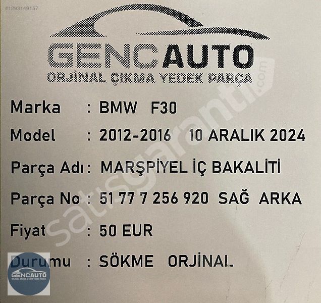 | Çıkma Yedek Parça | Evet |