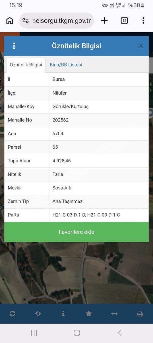 Bursa’nın en hızlı gelişen bölgelerinden biri olan Nilüfer Görükle Kurtuluş Mahallesi Şosa Altı mevkiinde bulunan, 5704 ada 65 parseldeki tarlanın 188 m² hissesi satışa sunulmuştur.