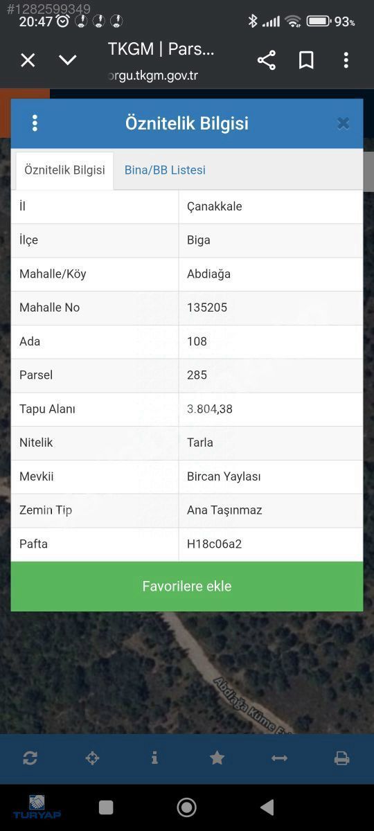 ÇANAKKALE BİGA ABDİAĞA KÖYÜNDE SATILIK KELEPİR TARLA!!