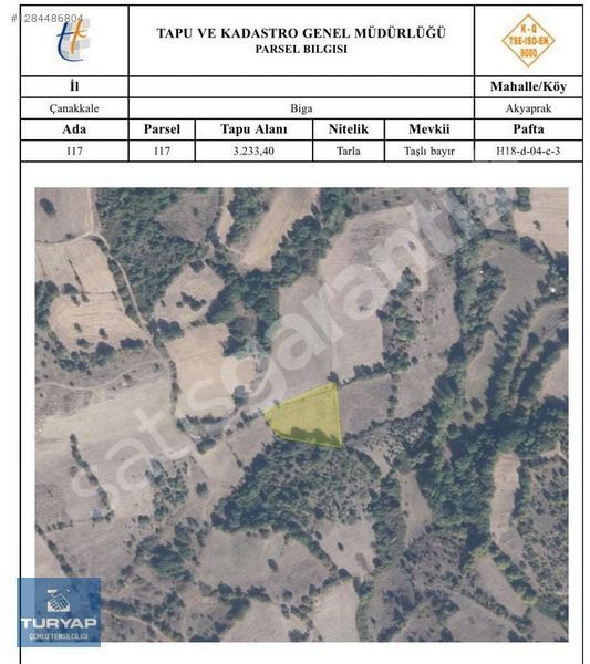 **ÇANAKKALE BİGA AKYAPRAK'ta SATILIK 3233m2 TARLA**