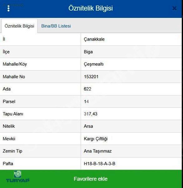 ÇANAKKALE BİGA ÇEŞMEALTI 317M2 2 KAT İMARLI ARSA